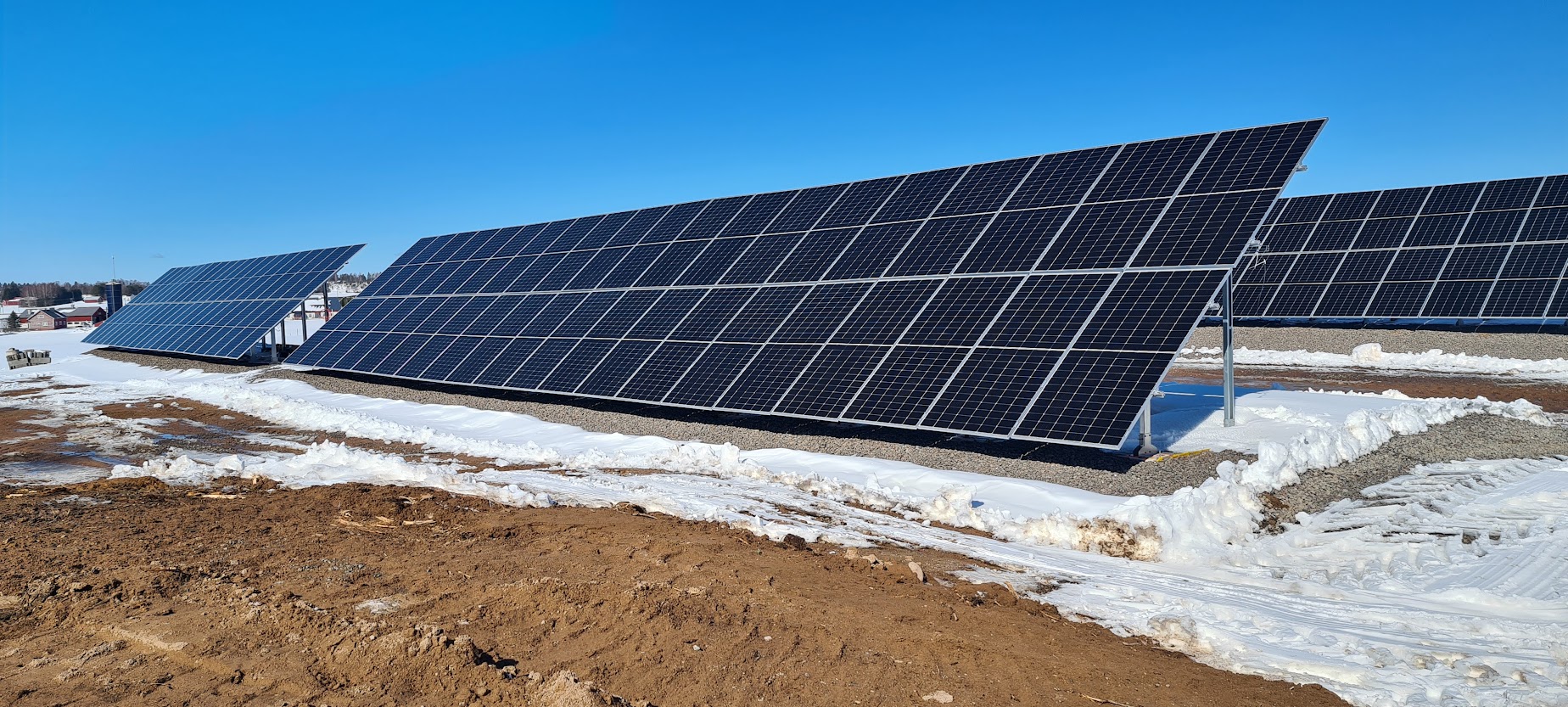 Käyttämämme aurinkopaneelit yksikide/monikide Amerisolar 410W PERC HC ja TrinaSolar Tallmax 450W tehoisia.